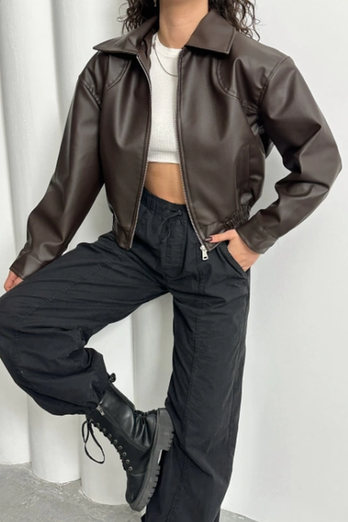 LERMONA Acı Kahve Bomber Deri Ceket