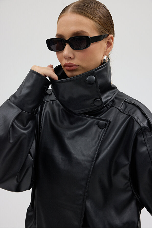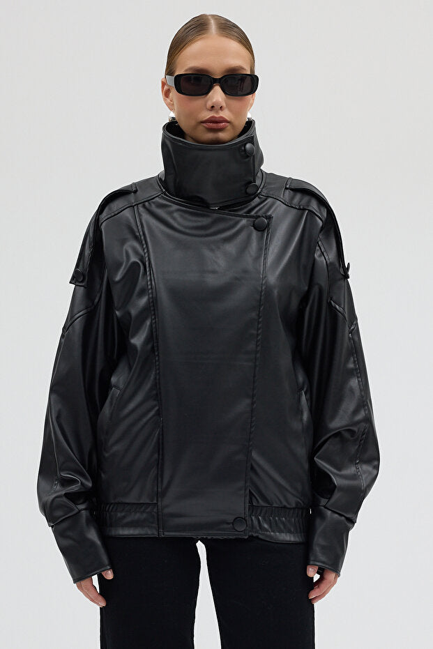 LERMONA Urban Icon Oversize Siyah Deri Ceket